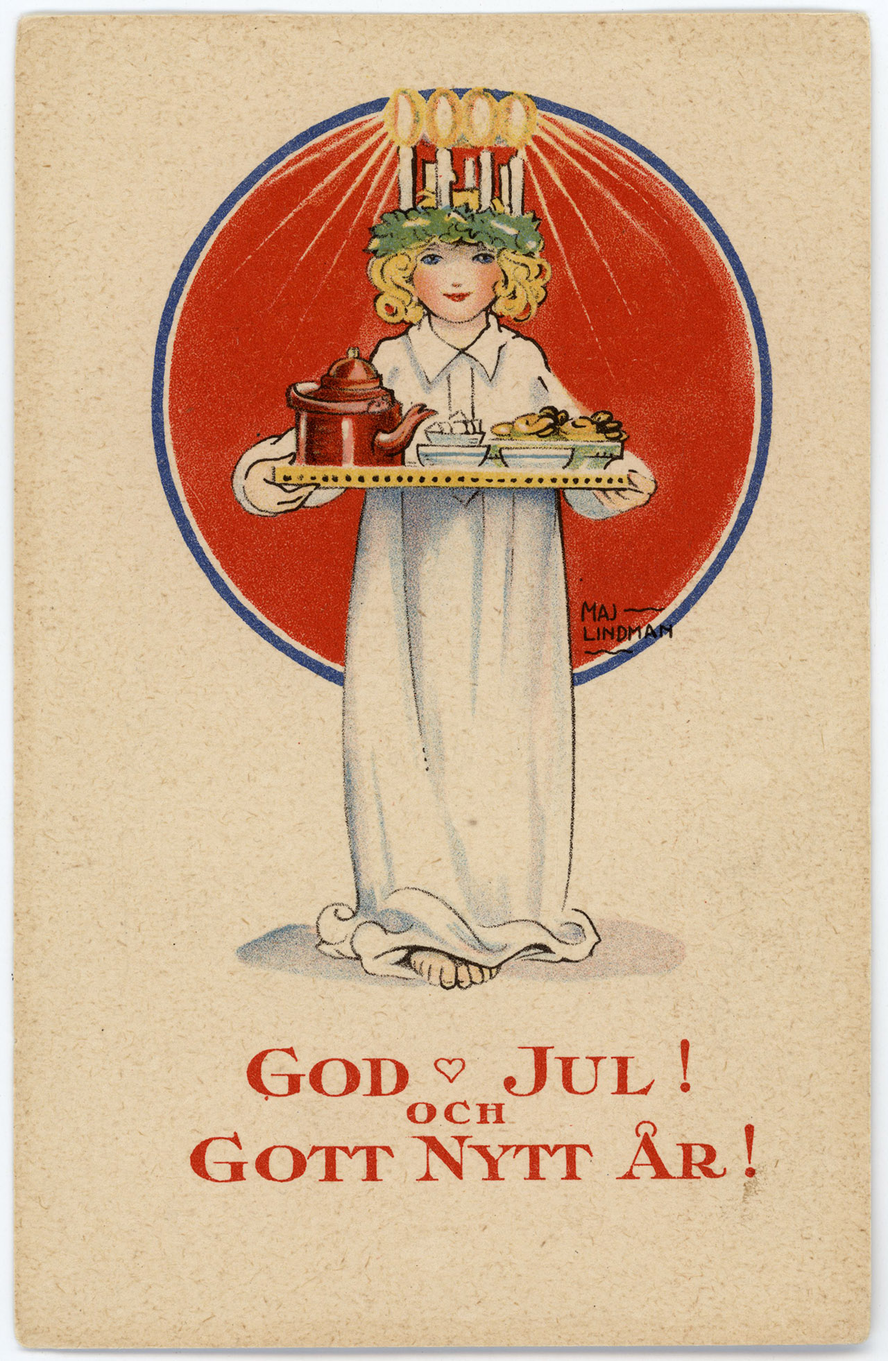 Mary Hultén, känd som Maj Lindman (1886-1972) har målat dagens julkort. Hon var en svensk illustratör, bildkonstnär, författare och skulptör. Hon har även kallats Maj Lindman-Jan och Maj Lindman-Hultén. Hon studerade vid Kerstin Cardons målarskola 1905–1906 och vid Konstakademien 1907–1908. Hon har skrivit och illustrerat boken Rufsi, Tufsi, Tott och den lilla hunden med det gula örat samt ett hundratal andra verk. Lindman har även illustrerat ett flertal utgåvor av svenska skolplanscher.